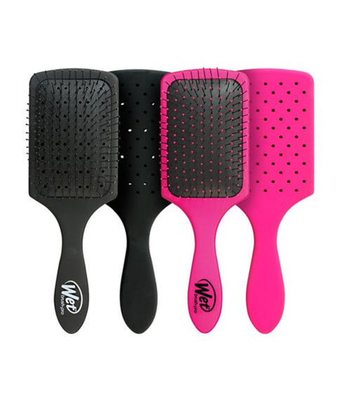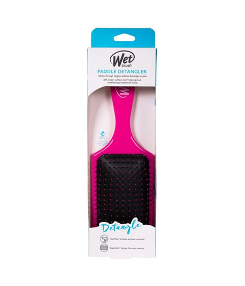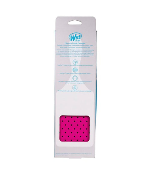 WetBrush Pro Paddle Detangler Hair Brush used to spread conditioning treatments and hair masks through hair with effortless ease. Not only does this brush gently loosen knots without pain or pulling, it's also great for maximising the effectiveness of masks and treatments. Super easy brush clean-up with no leftover build-up. 20% larger surface area makes this one seriously efficient WetBrush.