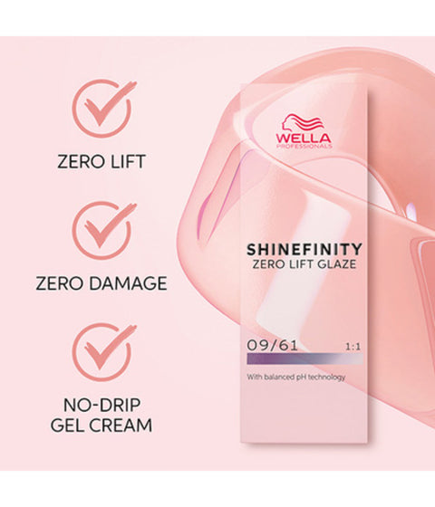 Wella Professionals Shinefinity, shine you can feel! The new translucent demi-permanent hair color offers zero lift, zero damage, up to 6 weeks color glaze. It is a clean formula with true-to-tone reliable color results, no-drip gel cream and balanced pH technology.